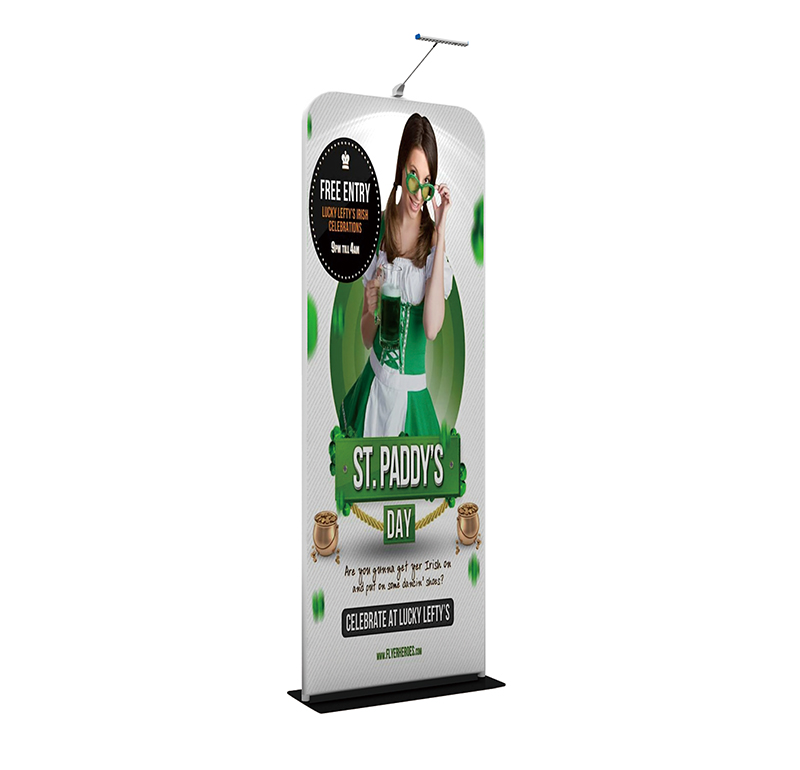 Add some class to your exhibit booth while expediting your banner stand setup with our Standing Tube Displays. This display is allowing for maximum impact on your audience. Dye-sublimated printing on premium stretch fabric. To assemble, secure the longest vertical poles onto the steel base using the included hex wrench. Add the bottom horizontal support pole and secure. Snap on the remaining vertical poles, then top frame with the curved bar to complete. Tilt or set the Standing Tube completely flat on a clean, flat surface to swiftly drape with the pillowcase graphic. Using the zipper on the bottom of the fabric print, zip close underneath the support pole to maximize taut and fabric tension.