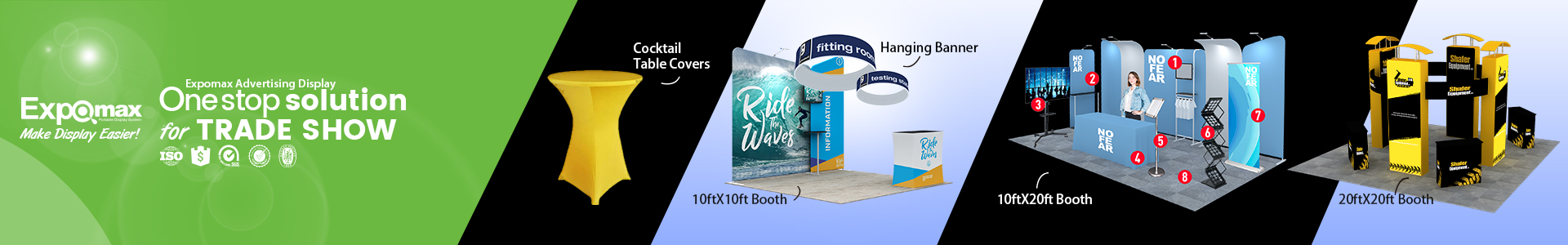 Expomax는 휴대용 디스플레이부터 패브릭 구조물, 모듈형 전시 부스, 간판 솔루션 등에 이르기까지 전 세계적으로 가장 광범위한 전시 및 디스플레이 제품군을 제공합니다.