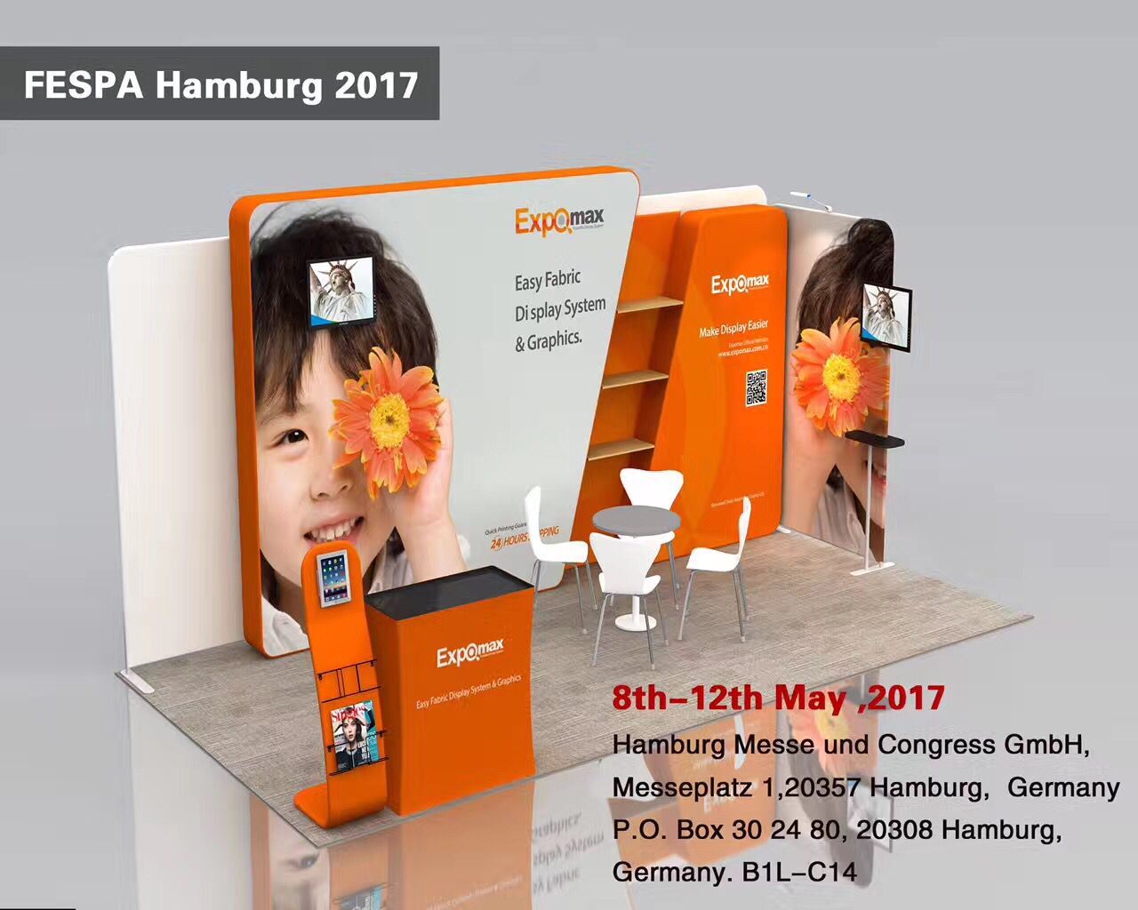 Expomax Display will be in Hamburg again for Fespa 2017 which will be held from 8th May to the 12th May 2017 at the Hamburg.And welcome to Expomax Display booth B1L-C14.